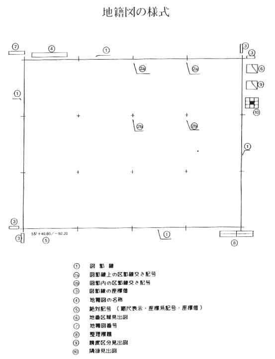 ここで、ちょっと人間の眼の分解能について触れておく必要があると思います。人間の眼の 能力は25センチ離れた場所で0.2ミリのものを識別出来るという事らしいのです。それではこ のことをそのまま地図の読み取りに当てはめると、地図上の0.2ミリは1000分の1の図面で すと現地では20センチ、500分の1ですと10センチ以下のものは地図上からは人間の眼で は判断出来ないという事になります。 国土調査の図面上の境界線は大体0.1ミリの線で記載されているようですので、1000分 の1で10センチ、500分の1では5センチ程度でしか識別出来ないというのが本当のようで す。 したがって、ここでの読み取りについては、その程度でしか読み取る事が出来ないという事は 良く理解しておいてほしいものです。 ● 面積の計算方法 一応、読み取りについては以上で終了したのですが、読み取りを行った1筆地全部につい て、三斜法で面積を計算してみて下さい。 一方、先程読み取る事が出来ました座標で、最近 の面積の計算方法である座標法で計算し