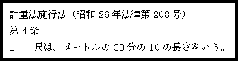 尺貫法(しゃくかんほう)・・・長さに尺、質量に貫を使った日本固有の単位系