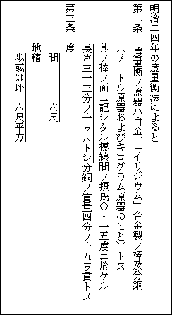 明治24(1891)年制定 「度量衡法」・・・メートル原器、キログラム原器を得て制定された。