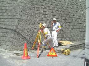 基準点を設置する岩と道の間には3メートルほどの距離があるのだが、その間は平坦では