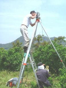 観測を開始する前には、その都度三脚の据付の踏み込みの確認の後、高さをもう一度チェ