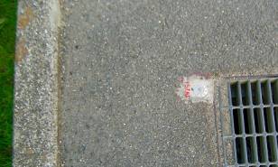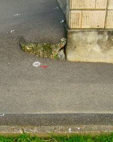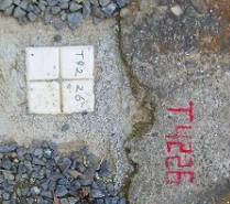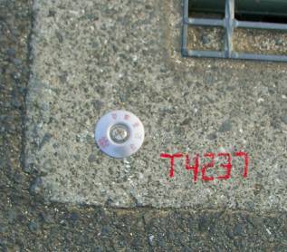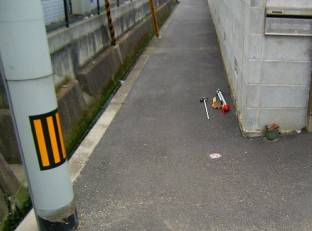 高岡基準点設置作業 5 ( 下水道工事・図根多角点鋲の設置 ) 平成20年10月3日、選点が一応終了し、本日からは図根多角点を設置していく。 1輪車を先頭に、手にはドリルを持ちながらの行進である。 1輪車にはセメント、タガネ、石頭、替えのバッテリー、図根多角点用の座、鋲、そして ペットボトルに入った水を積んでいる。 図根多角点・ステンレス製の座 図根多角点には登記基準点と刻印されたステンレス製の座と8センチの長さのステンレス 鋲を使用している。 図根多角点の予定位置であるチョークの場所に刃先の径6.5ミリを使用してドリルで穴を開け 登記基準点の刻印のあるステンレス製の座をつけ、鋲を打ち込む手はずなのだが、そのまま 素直に実行しない迷惑おっさんである。 今回も何やらやっている。 ドリルで開けた穴の周囲を円錐状にタガネで広げ、ホースを使って息を吹き込み穴の中に 詰まったコンクリートくずを噴出した。 今度は、ステンレス製の座を石頭で叩き、盛り上がった部分を水平にしている。 穴の部分をタガネで削ったのは、座の部分の鋲を受けるためにある下側の膨らみの部分が 入るように削ったようだ。 おもむろに鋲に座をつけ、打ち込むと図根多角点の鋲はコンクリート部分と平坦になった。 図根多角点の座とステンレス鋲 ![]() 通常の座 叩いて平たくした座 ![]() 設置された図根多角点 以降、この方法が取られることになる。 図根多角点・ステンレス製鋲 通常5pのステンレス鋲が使用されている。 今回、図根多角点に使用されている鋲は8pのステンレス鋲である。 ドリルで穴を開け、打ち込むのだから問題が無いように思うが、通常よりも長い鋲であり ステンレス鋲特有の柔らかさが我々を困らすことになる。 ![]() 上が通常使用する鋲、下が今回使用した8cmのステンレス鋲 石頭がまっすぐ鋲に当らないと不気味な音がして鋲が穴の途中で止まってしまう。 それでも打ち込むと鋲は松の木のようにグネッと曲がってしまうことになる。 各人注意をしながら打ち込むのだが、中途半端な力で叩き込むと不気味なグキッという音が すればそこから穴に入り込まなくなり、曲がり始める。 思い切り叩き込むとうまく当り、快適な音とともにスッ、スッと入り込むのだが、それは「叩く」 というよりも「しばき倒す」という表現になる。 「しばき倒す」のは迷惑おっさんとN本さん。 「叩く」のは測量屋さんと老眼おっさん。 その理由は・・・。 老眼おっさんは家庭円満とだけ言っておこう。 下水道工事 図根多角点の為に道路内のコンクリート構造物に8センチの長さのステンレス鋲を入れる。 設置の為にコンクリートにドリルで穴を開け、石頭でしばく。 なんともろい。 ヒビが入り、周りが欠けていく。 石頭で軽くコンと叩くと、ポロッと欠けてしまう。 「あれっ、やばい。」 30年前に開発された団地だから、構造物そのものが老化している。 こりゃいかんと修理の為に、インスタントセメントで補修をする。 道路のL型側溝も砂のようになっている、そのまま打ち込んでも固定出来る訳もなく、穴を 掘り図根多角点の鋲をインスタントセメントで固める。 連続してそんな事が続くと、じっと見ていた近所の奥さん。 「家の前の道路のコンクリート部分にもヒビが入っているので修理してくれませんか。」 「はい、直しましょう。」迷惑おっさん、残ったセメントを持って修理を始める。 しばらくは、ご近所の奥さん方からの修理依頼が続く。 とうとう、「下水道工事関係者の方ですか。早く、ここ直してくれませんか。」 「いえ、私達は地図を作るために基準になる点をどこにするか調査しているんです。」 「地図はあるんじゃないの。」 「今度、法務省が作る事になりまして。」 「へぇ〜。そうですか。下水道も3月から工事をすると言って、まだ工事してくれないのよ。 早く工事するように言ってくれません。」 「いえ、私たちは市役所の者ではないんですよ。」 ![]() コンクリート構造物が古い コンクリート構造物が無い いくら古くて脆いコンクリート構造物でも、ある限りは利用できるのだが、図根多角点を設置し ようとしても何も無い場合はどうしようもない。 視通の関係や、1筆地を観測するために、どうしても必要な位置で構造物が何も無いところに ついては、8センチのステンレス鋲を固定することが出来るよう、アスファルト舗装に直径10p 深さ15p程度の穴を開け、セメントで固定することになる。 コア抜きの刃先を用意していなかったため、刃先6.5センチを使用してドリルで円を描くように 5,6箇所穴を開け、タガネで形を整えるように ハツリ、アスファルトの破片をスプーンで掻き出し ていく。 時間的には1箇所30分程度の所要時間になるが、慣れてくると二人で1箇所の受け持ちで 分担して一斉に取り掛かる。 ![]() アスファルト舗装に穴を開け、セメントで図根多角点を固定する コンクリート構造物が無くても、汚水枡や水路のグレーチングが設置されている