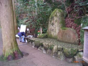湧き出る水を汲みに遠方からわざわ