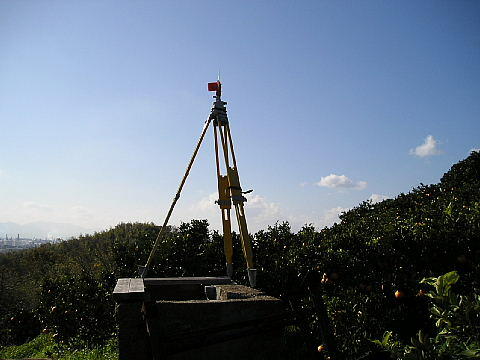 新浜町のみかん山でつくった基準点の写真です。