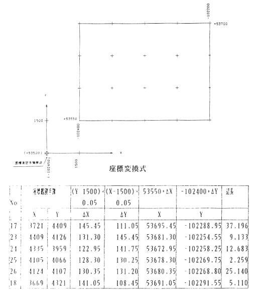 国土調査を実施した後、法17条地図に指定された地図において、数値測量で実施された1筆 地の座標値については、もし、その座標を閲覧する事が出来るならば、そのままの値を使用 し、復元を行うとは勿論であり、そうするべきであろう。ただ残念ながら、その座標値について は公開している所はあまりないようである。当然、その座標値については我々が使用している 公共座標値そのままで記載されているはずである。 図解法による古い時代の国土調査については、数値法による1筆他の実測による座標値は 当然、存在しない。 しかし、それらの市町村の中には、面積測定のために使用したと思われる読み取りによる1 筆地の座標値を保存している所も多いようである。 当然、読み取りとは言え、原図、もしくは原図に近いものを読み取っているはずであるから、 我々が17条地図を謄写し、読み取る時に生じる誤差を考えれは、その座標値について知るこ とが出来、利用することができればと思う。これらの資料については数値法によるものと違って ほとんどの市町村においても閲覧が可能であると聞く。 ただ、この場合でも、その読み取りを行った時代の読み取り機の性能や、パソコンの性能に よるもの、また、担当者の認識によるものと思われるいろいろな読み取りの結果(座標値)が ある。 大半はそのまま公共座標として使用することが出来るようである。しかし、1部についてはそ のまま公共座標として使用出来ず、ある程度公式等により変換する必要があるようだ、そこ で、特殊な例を3例ほど紹介するこことしたい。 @ 測量座標による読み取り 図郭枠の左下を原点とし、X座標、Y座接ともすべて正の座標で読み取りし、最初は 1000分の1で読み取りを行つた後、読み取った値を2分のlにして、500分の1の値とす る。(1000分の1の方がスケールの目盛が細かいため、より小さな数字で読める工 夫?) A 測量座標による読み取り 図郭枠の右下を原点とし、X座標については正の値、Y座標については負の値で読み 取っているもの(Y座標がすべて負の地区だと思われる、符号による間違いが少な い?、面倒くさくない) B数学座標による読取 団郭枠の左下よりも、もう一つ斜め下の場所の図郭線の位置を原点として数学座標 で読取りを行い。測量座標にするには変換式を必要とする。 これらの事例がすべてではないと思います、場合によったり、地域性により、これらの方法が 複合的に使用されている場合もあるだろうし、他に全く違った方法もあるかもしれませんが、と りあえず、この3例を説明したいと思う。 ただ、ここで間違えてはならない事は、この読み取り値については、面積算定のための資料 であることです。たとえ、隣接する同一の筆界点であっても一筆毎に別々に読み取っており、 土地の形状にピッタリー致していると言っても、その座標値が必ずしも同一ではないことがあり 注意すべきである、もし、復元する必要があるならば隣接の土地の筆界点の座標値を一度 チェックしてか使用すぺきであろう。