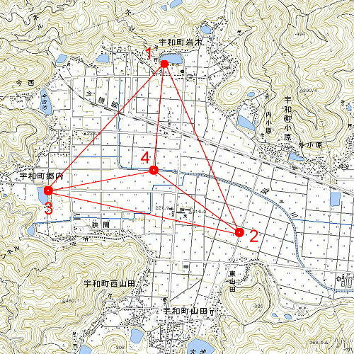 3つ目の与点Aは道路を建設するために亡失した四等三角点があった場所にしてある。
