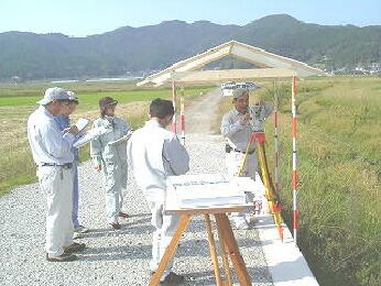 「この間、話していた研修の場所だけど、この辺りの池土手には基準点を作ってあるので