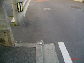 高岡町基準点設置作業 9 ( 観測は続く ) 建標承諾 迷惑おっさんと測量屋さん、朝方調査士会館の駐車場で安全靴を履きながら話している。 「建標承諾取れた?。」 「はい。もう少しかかると思っていたんですが、昨日法務局の表示登記 専門官から取れた という連絡がきました。」 どうも、法3−27と法3−28の事らしい。 3級基準点を2点設置予定になっているが、図根多角点の観測が開始されても、まだ2つの 3級基準点が設置されていない。 当然それに関連する図根多角点の観測もされていない。 公共測量になるので、届出の為には段階を追い、各種の必要書類があり、迷惑おっさんと 測量屋さんが、法務局と交渉しながら進行してくれている。 観測現場の処理だけでも大変な状態なのに頭の下がる思いである。 次週には、3級基準点法3−27、法3−28を設置することになるようである。 ある測量者 小学校近くの街区多角点近傍の位置で、作業服を着た同業者と思われる人が測量をしている。 調査士さんであれば、後々の事もあり街区多角点か図根多角点を使用して測量しておくことを 勧めておかなければならない。 迷惑おっさんも恐らく同じ事を思ったのだろう、そちらに行って話しかけている。 遠目で見ていると、観測方法からしてどうも同業者ではないようだ。 TSの本体を片手で握りしめながら、ずっと観測している。 迷惑おっさんが戻ってきた。 「任意座標の極地よ、石頭を逆さにして柄の部分の底にマジックで印をして、それを求心して いたよ。」 荻やんも顔見知りのようでお互いに話し合っていた。 「道路との境界が解らないんだけど、道路後退線はどこか聞かれたよ。建物を建てるための 測量と言っていたけれど、図面が一人歩きするんだよね。境界確認の無いあのような測量の 成果図面が、後日土地の図面があると言って境界紛争の時に出てくるんだよね。怖いなぁ。」 トラブル 測量屋さんはデータコレクターを使用、N本さんは自分のTSに直接データを取り込む形で観測 を行っている。 この日、N本さんにトラブルが・・。 そろそろお腹の虫が騒ぎ出す、昼休みも近くなった頃。 突然、N本さんのTSが動かなくなった。 全く観測データを記憶することが出来なくなった。 どうもデータ量が器械の記憶容量を超えたようだ。 記録されている古い現場を削除して、新たな観測データを記憶させようとするが、距離の表示が おかしい、数字が2桁ほど相違するデータに化けているようである。 小数点の位置が相違して表示されているようだ。 皆が騒ぎ始めるが、測量屋さん一人だけ、 「T社の器械でしょう。電源を切ってしばらく休ますと直りますよ。」 と平然としている。 しかし、電源を切っても直らず、ついには販売店の営業担当者を呼び出し対応してもらうことに なった。 すぐに担当者は現場に駆けつけ、記録しているデータをパソコンに取り込んだ後、TSの記録を 初期化してもらったところ正常に動き始めたのだが、 「この手の器械は7年もすると交換の時期なんですが・・。」と営業担当者、N本さんに暗に買い 替えを勧めたようだ。 取り付け点30A90 3A126と3A122から方向角の取り付けの為、街区多角点30A90を観測した。 街区多角点30A90にターゲットを据付、3A122からは測量屋さんの観測、3A126からはN本さん の観測である。 まずは3A122の測量屋さんの方向にターゲットを向け観測終了後、3A126のN本さんの方向に 向けて観測は順調に終了した。 しかし、後日この街区多角点を使用して測量したY内さんから連絡があって、高さで4p、水平 位置で2pの位置誤差があったらしい。 街区多角点30A90は、コンクリート枡に設置してある。 南北に走る道路と、西側から交差する道路の三叉路である。 南北に走る道路は、この三叉路から南側の道路は広く4m幅、北側は3m幅、西側からの道路 も3m幅である。 いずれの道路も最近の下水道工事の為、アスファルト舗装が1mほどの幅で新しくなっている。 しかし、三叉路の中はアスファルト舗装全体が新しくなっている。 その中にコンクリート枡があり、コンクリート枡には準拠点鋲と街区多角点が隣接して設置して ある状態である。 西側の民地については平成13年に分筆され、民地側には調査士会会標が設置されている。 提出された地積測量図には会標の外、コンクリート枡にある準拠点鋲も記載されている。 街区多角点は平成18年に設置されており、点の記の写真には準拠点鋲も存在しており、現況と 一致している。 しかし、準拠点と会標との位置関係は1p程度の相違があるらしい。 民地側のコンクリート製のL型側溝は、街区多角点設置以降に新しくなっているようである。 問題のコンクリート枡は道路右側の電柱の前にある ![]() 手前の会標と準拠点のあるコンクリート枡 コンクリート枡にある街区点と準拠点 基準点間の水平位置の相違が2p程度、境界標識と準拠点との位置関係が1p程度であること から、どうにも微妙な相違である。 単純な誤差なのか、移動なのか解らない