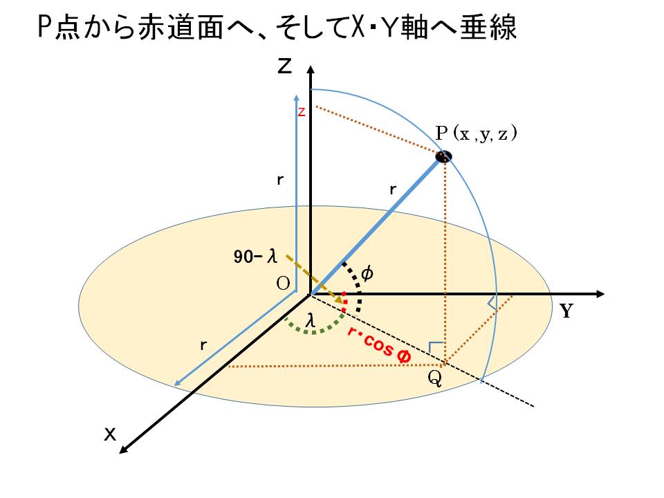三次元直交座標の基礎を幾何学的に図示して考察してみました。