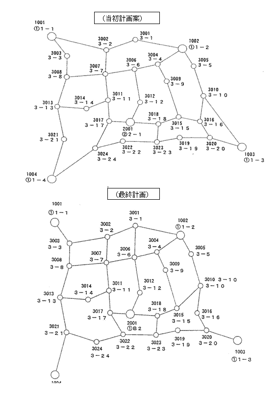 (4級図根多角点網の計画、太線は検証計画ブロック) 4.3 電子基準点と1級図根点